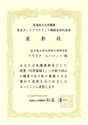 ▼Muhammet Uyanik准教授が東海国立大学機構教育グッドプラクティス機構長特別表彰を受賞(2025年8月26日)https://www.nagoya-u.ac.jp/info/kikou/post_487.html