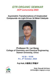 ▼GTR Organic Seminar of Professor Lei Gong (Xiamen University, China)(Fri. 4th Oct., 2024)