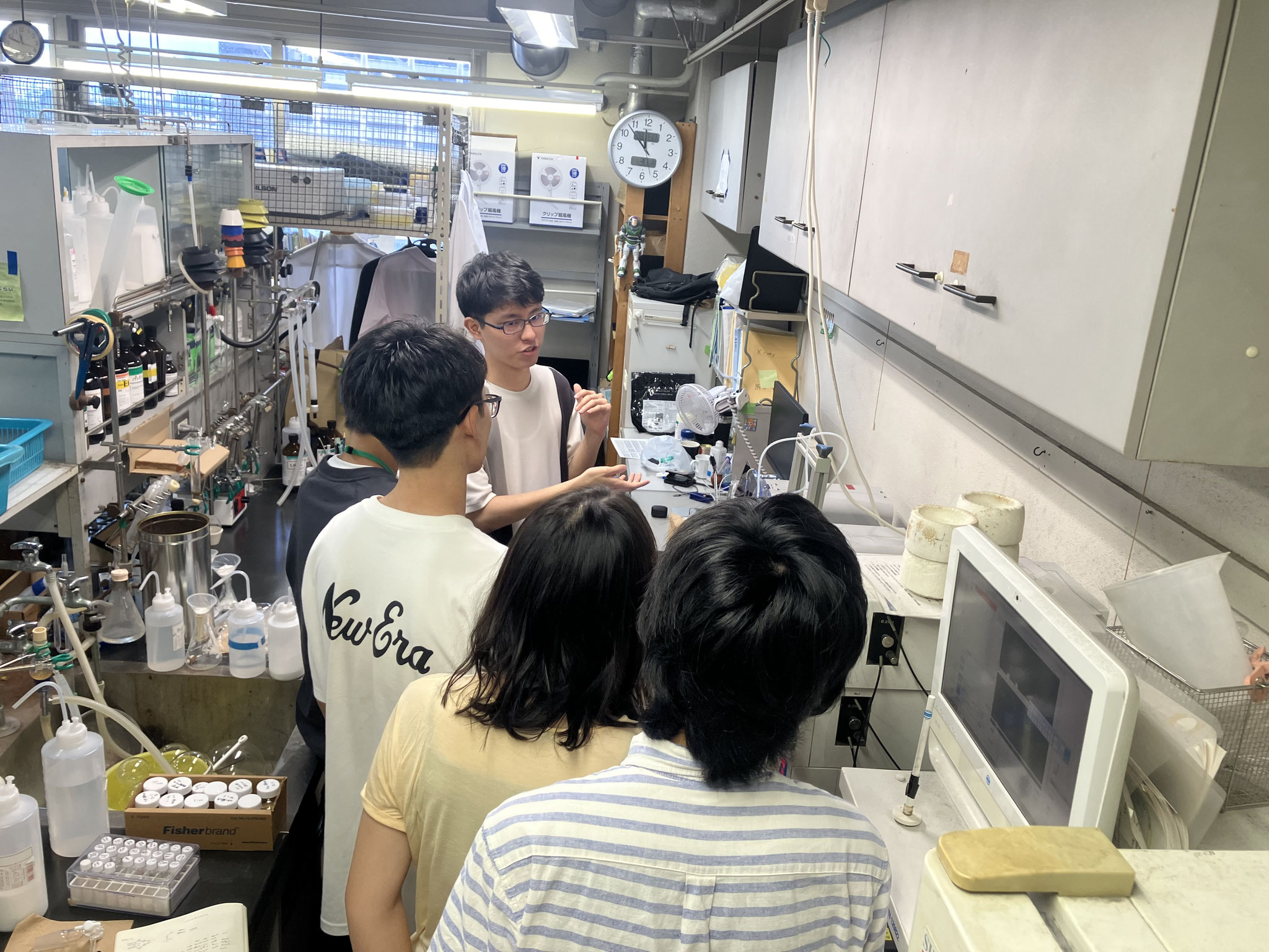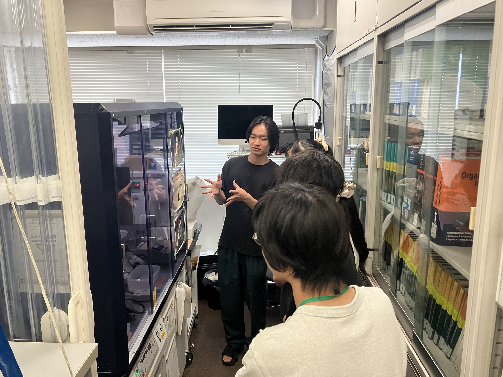 ▼2024年化学生命工学科オープンキャンパス 石原研見学の様子 (2024年8月8日)