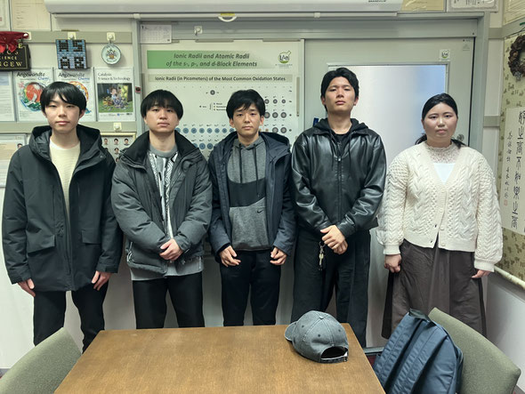 HUANG Jianhao (D3)、松井開 (D3)、浦田真由 (M2)、松田春輝 (M2)、SHAN Chengyi (M2)